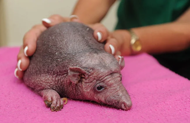 Лысый трубкозуб тоже находится в большой опасности. Шерсть защищает его нежную кожу от солнечных ожогов. Нет шерсти – есть ожоги.