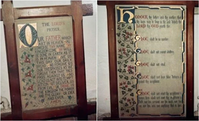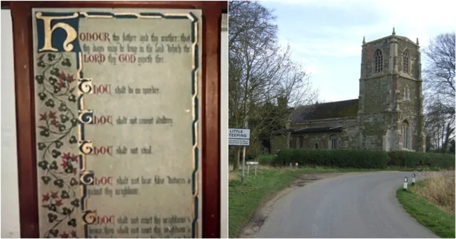 В церкви Святого Андрея в Литл-Стипинге, Линкольншир, хранились три фрески времен Викторианской эпохи с изображением заповедей, которые Господь лично передал Моисею на горе Синай (20-я глава Исхода) и которые предписывали людям правила их жизни — не убий, не прелюбодействуй, не лжесвидетельствуй, почитай отца и мать и так далее. В том числе «не укради». Но какие-то сволочи взяли и украли.
