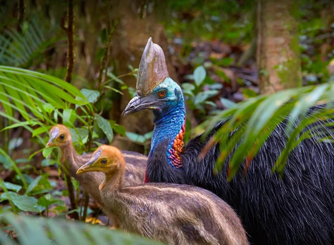 Поверить в то, что казуар — пернатый Жан-Клод Ван Дамм не сложно. Это вторая по размерам птица планеты. До 2 метров роста, до 60 килограммов массы — он одним своим видом внушает ужас! Среди аборигенной фауны Новой Гвинеи казуар — второе по размерам животное. По длине он уступает лишь крупнейшим крокодиловым варанам.
