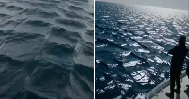 Опасное явление было замечено в Эгейском море у побережья Турции. Рыбаки с изумлением наблюдали за морской стихией, словно рисующей шахматную доску.