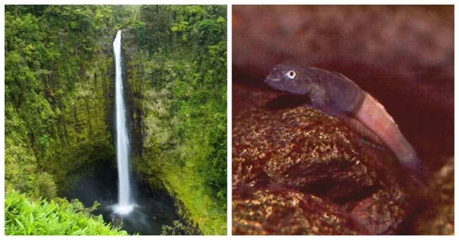 Небольшие рыбы-бычки под названием «о'опу аламао'о» (научное название Lentipes concolor) живут в Тихом океане, но нерестятся в ручье над водопадом. Икринки откладываются на вершине и вымываются обратно в океан, где и созревают. Когда рыба готова к размножению, она возвращается назад. С помощью специальной присоски на нижней стороне тела они взбираются на скалы за водопадом, чтобы начать цикл заново. Многие водопады скрывают пещеры, но этот, возможно, единственный, который скрывает рыбу-скалолаза.