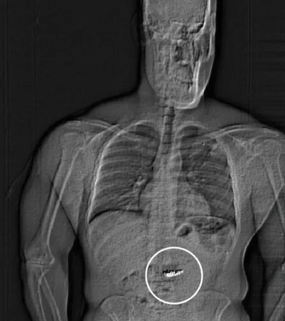 Уже в тюрьме мужчина неожиданно спросил персонал, не накажут ли его за то, что в его желудке. Гилдеру провели сканирование тела, в ходе которого детективы обнаружили инородные предметы в пищеварительном тракте.
