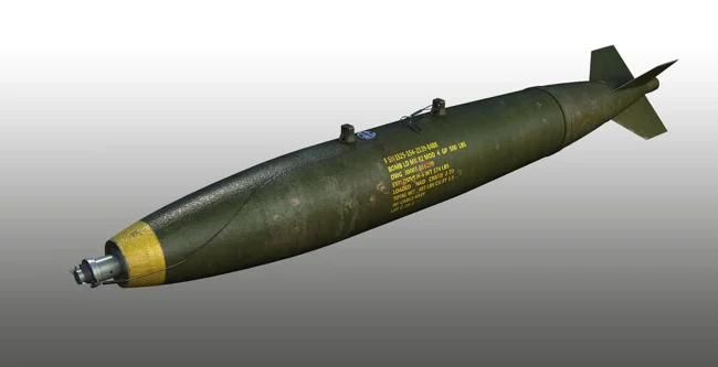 Бомба MK-82 предназначается для разрушения зданий и мостов, она создает воронку диаметром восемь метров и глубиной 2,4 метра. Бомбу сбрасывают без наведения, в неуправляемом режиме.