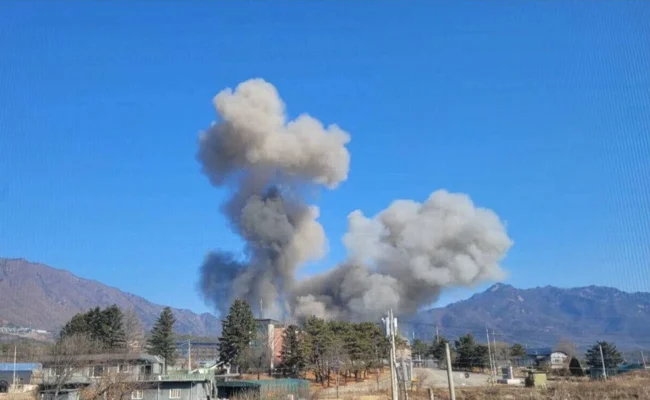 Во время учений произошёл неконтролируемый сброс боеприпасов аккурат над городом Пхочхон.