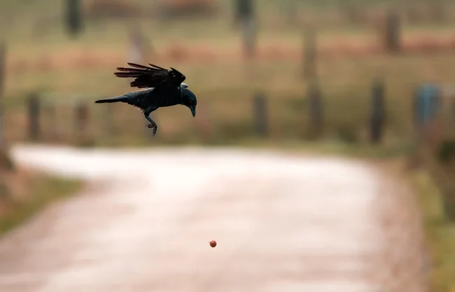 Вообще, кидать что-то с неба у птиц в порядке вещей. Если вы жили в сельской местности на юге, то понимаете, о чём я. Осенью, когда спеет грецкий орех, вороны дежурят у деревьев и наперебой хватают орешки. Вскрыть твердую скорлупку самостоятельно получается не всегда. Тогда птички взлетают повыше и швыряют орех вниз. Доступное питательное лакомство готово! В городах с орехами проблемка, с развлечениями для ворон — тоже, вот они и придумали себе новую забаву.