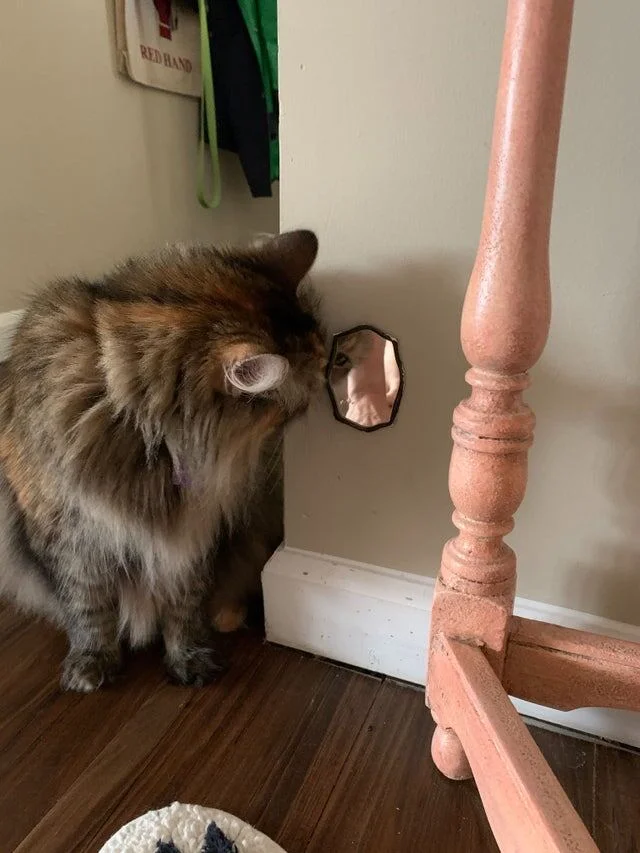 Кот Роско и его отражение в увеличивающем зеркале уже даже попало в мемы. У нас есть об этом пост.