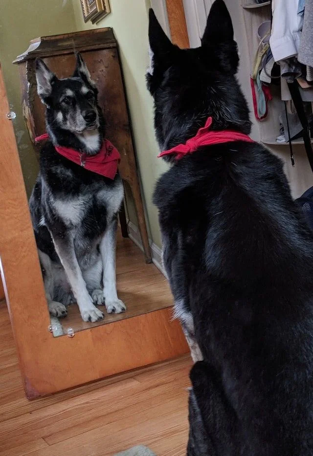 6. «Когда проснулся, застал собаку за тем, что она сидела, уставившись на себя в зеркале»