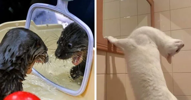 15 случаев, когда животные встречались со своим отражением в зеркале (16 фото)
