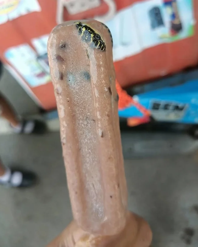 Житель Таиланда купил мороженое на палочке у уличного продавца. Открыв упаковку он обнаружил, что в лакомстве, помимо начинки, находилось туловище и голова змеи.