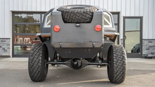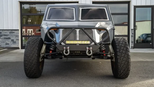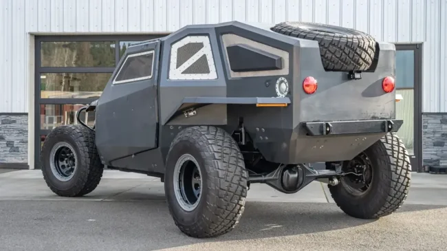 Багги сделан по примитивной схеме: стеклопластиковые панели скрывают пространственную стальную раму. Хорошие внедорожные качества обеспечивают минимальные свесы кузова и длинноходная подвеска. Внедорожные шины надеты на усиленные диски. Тормоза на всех колёсах дисковые.