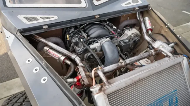 Спереди установлен 6,2-литровый двигатель LS3 V8. Мотор концерна GM широко известен по моделям Camaro и Corvette. На багги он выдаёт 430 л.с. и сопряжён с трёхступенчатым «автоматом». Трансмиссию усложнять не стали, поэтому привод у машины только задний.