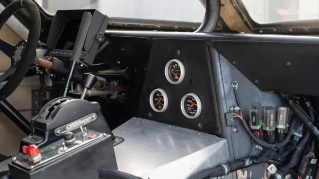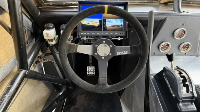 В аскетичном кокпите смонтирован один гоночный «ковш» MasterCraft и необходимый минимум приборов. Перед водителем за быстросъёмным рулём красуется большой ЖК-дисплей, на который выводится изображение с внешних камер.