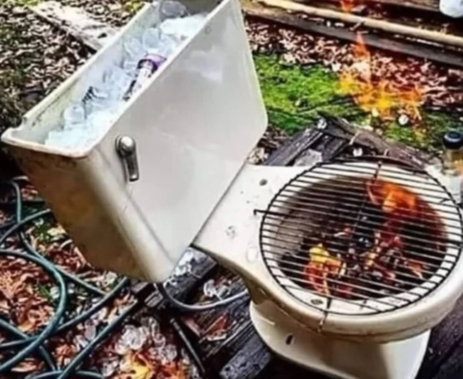 Кому-то показалось отличной идеей превратить старый унитаз в мангал. А в его бочке хранить лёд с напитками. Если тебе не страшны ассоциации, приятного аппетита!