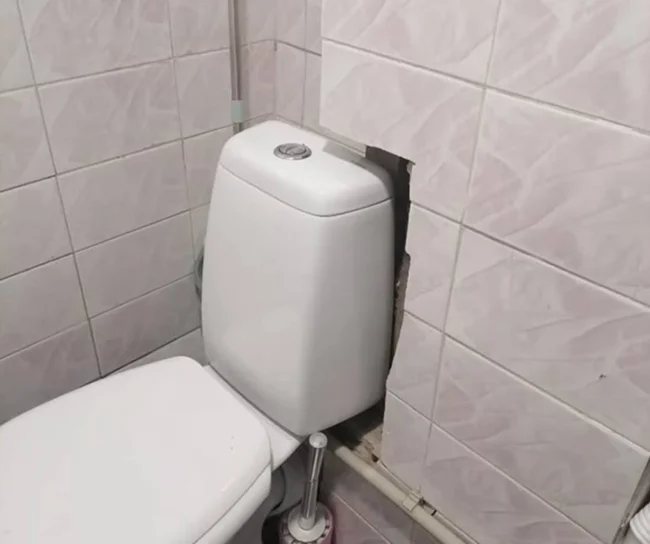 Экономия пространства – это круто. Но когда унитаз настолько вжат в стену, что его бачок кажется вмурованным в плитку, возникает вопрос: а что будет, если его нужно будет починить?