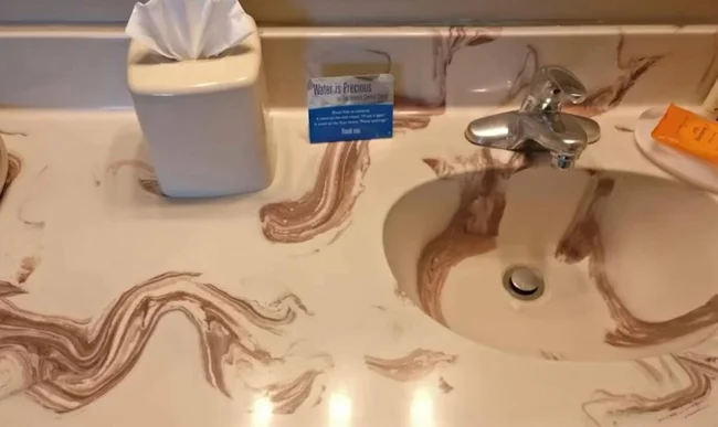 Узор на этой раковине настолько натуралистично напоминает… ну, скажем так, содержимое канализации, что возникает вопрос: это специально или ошибка производства?
