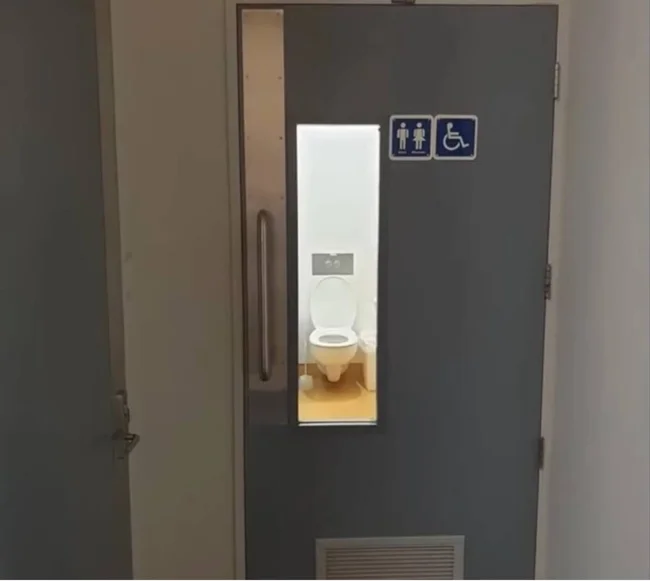 Когда у тебя есть окна в двери, это уже не туалет – это шоу. Теперь каждый желающий может заценить твою технику. Дизайнер явно хотел добавить немного остроты в повседневную рутину.