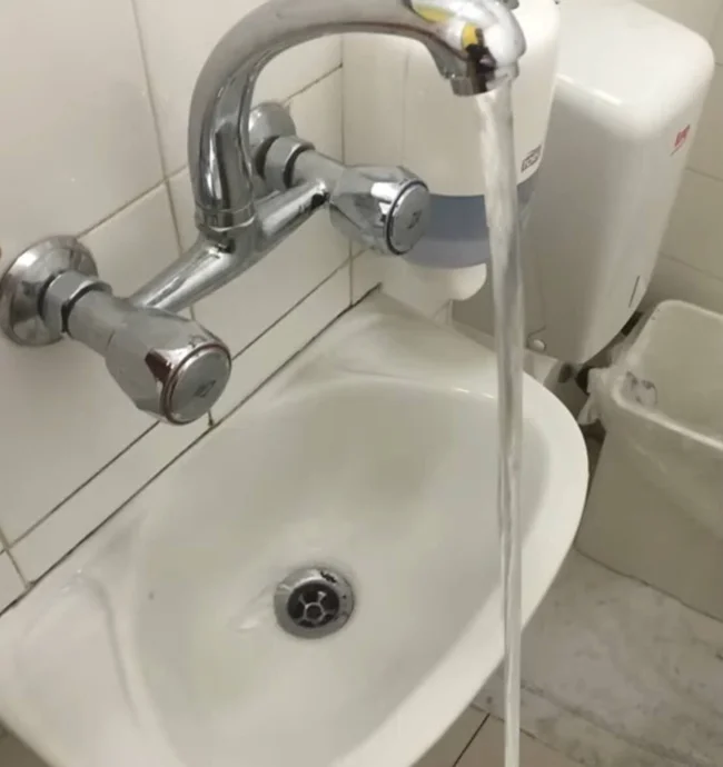 Главное в раковине – чтобы вода попадала в неё, а не на пол. Но этот дизайнер решил поиграть в «куда пойдёт струя» и поставил кран так, что вся вода летит мимо. Но зато идеально для мытья полов!