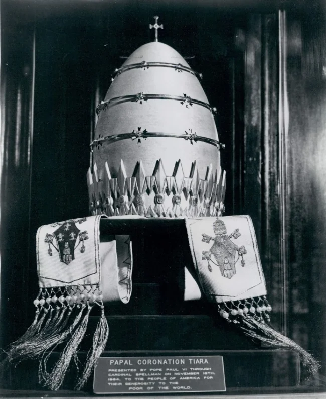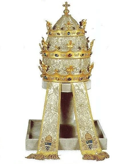 Трехъярусная корона, увенчанная небольшим крестом и имеющая две ниспадающие ленты, которую носили Папы с начала XIV века по 1965г.