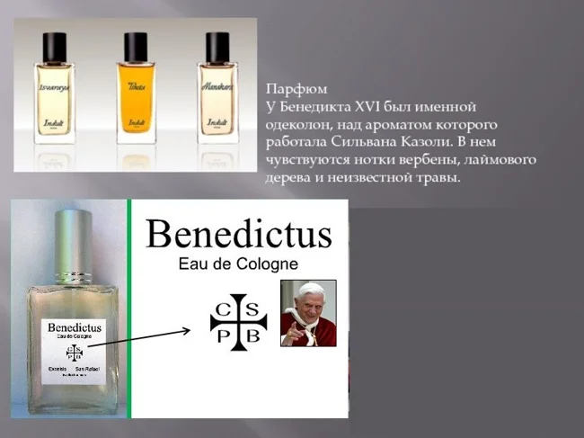 У Бенедикта XVI был именной одеколон, над ароматом которого работала Сильвана Казоли.