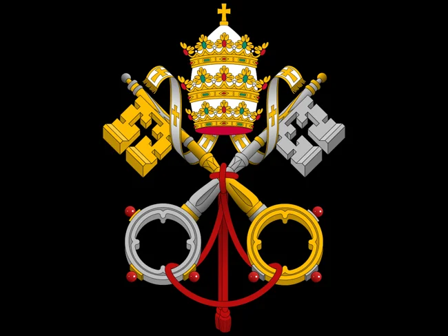 Пересеченные ключи отображают в символической форме ключи Симона Петра. Ключи золотые и серебряные, представляют власть связывать (серебро) и разрешать (золото), данную Церкви. Тройная корона (тиара) представляет три функции Папы как "верховного пастыря", "верховного учителя" и "первосвященника".