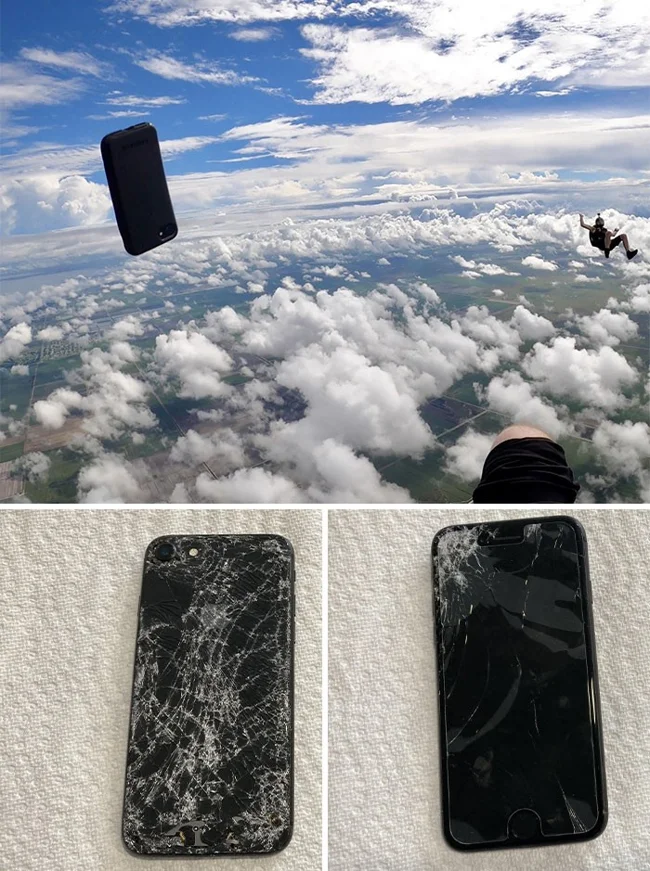29. Во время моего прыжка с парашютом телефон выпал из кармана. Я нашёл его на взлётной полосе. Удивительно, но он всё ещё работает