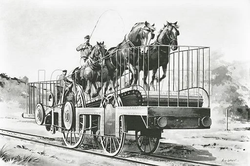 До появления паровых локомотивов движение на железных дорогах осуществлялось мускульной силой, обычно лошадьми. Животные тянули вагонетки с углем и рудой из шахт в доки по неподвижным рельсам из дерева или железа. В своё время эти так называемые вагонетки стали основным средством транспортировки угля из крупных шахт по всей Европе.