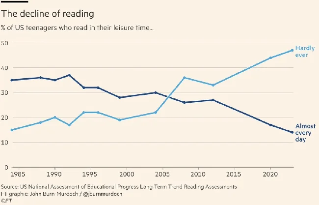 Существенно снизилась восприимчивость человечества к восприятию длинных текстов, отказ от текста в пользу видео, эффективный уровень грамотности людей снижается. Бонусом мы теряем навыки счета.