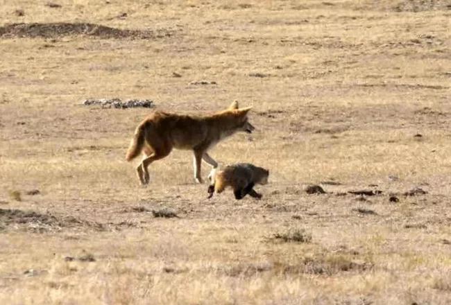 Койот загоняет грызунов, заставляя их прятаться в норах.