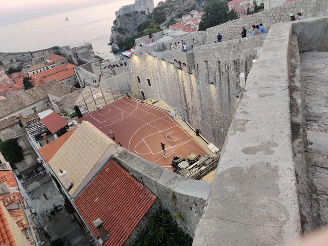 18. Современная баскетбольная площадка на фоне 700-летних стен в Дубровнике, Хорватия