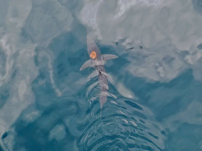 В заливе Хаураки в Новой Зеландии осьминог забрался на акулу-мако и прокатился на ней.