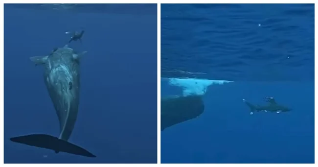 Два 45-тонных кашалота защитили дайвера от акулы (5 фото + 1 видео)