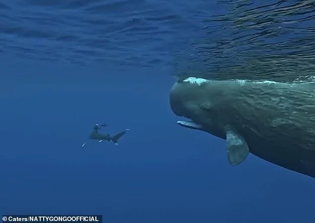 Самка кашалота, вероятно, передала сообщение, чтобы «акула держалась подальше». Видно, как млекопитающее ныряет и располагается между мужчиной и хищницей и следит за тем, чтобы та оставалась на поверхности воды. Затем самка кашалота укусила противницу за хвост, что стало для неё «неожиданностью».