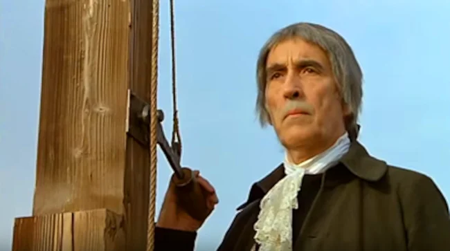 Британский актёр Кристофер Ли в роли французского палача Шарль - Анри Сансона в кинофильме «Французская революция», 1989 год