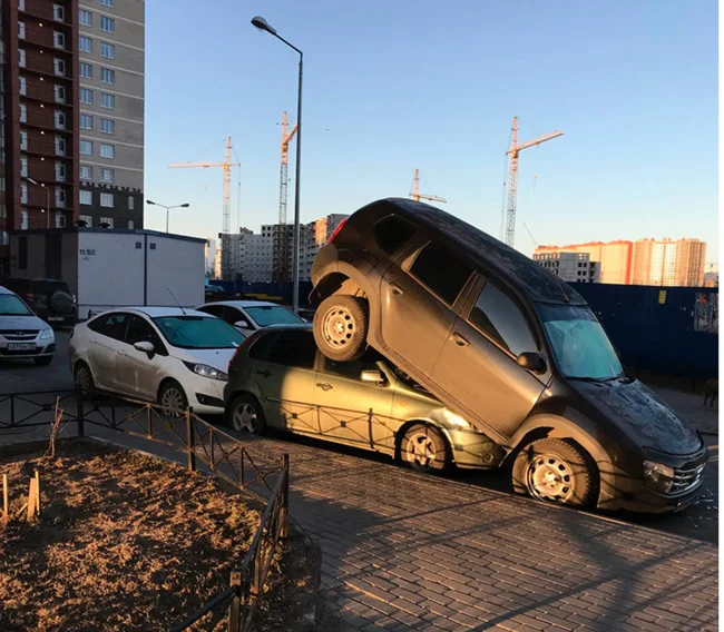 Этот гонщик приготовил к утру сюрприз 11 автовладельцам! И только потом сам припарковался — вот в такой позе