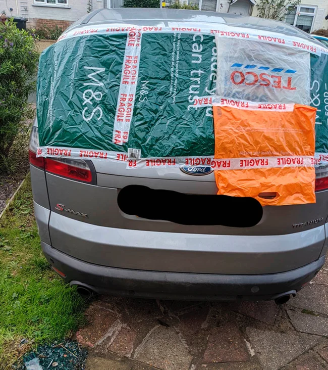 Утром обнаружено лопнувшее заднее стекло у любимой машинки. Печалька