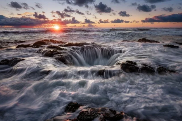 "Самое опасное место, которое я когда-либо фотографировал — Колодец Тора. Я провел 4 заката, пытаясь запечатлеть это место, и дважды упал в воду"