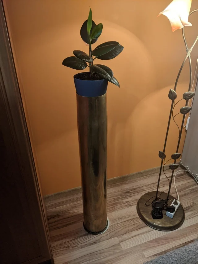 Моя бабушка использует гильзу 152-мм снаряда морской пушки в качестве подставки для растений