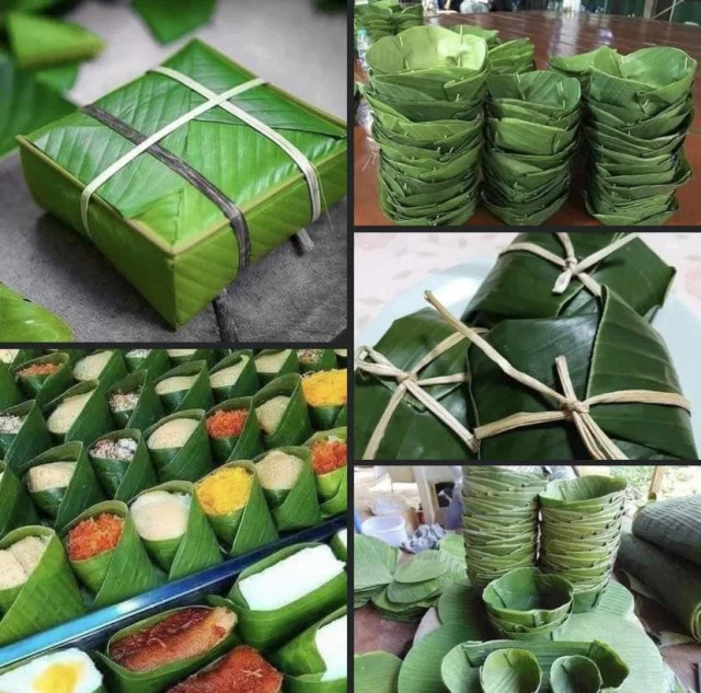 Симпатичное использование листьев банана в качестве упаковки