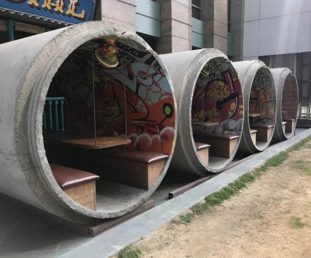 Бетонные канализационные трубы, используемые в качестве эдаких террас