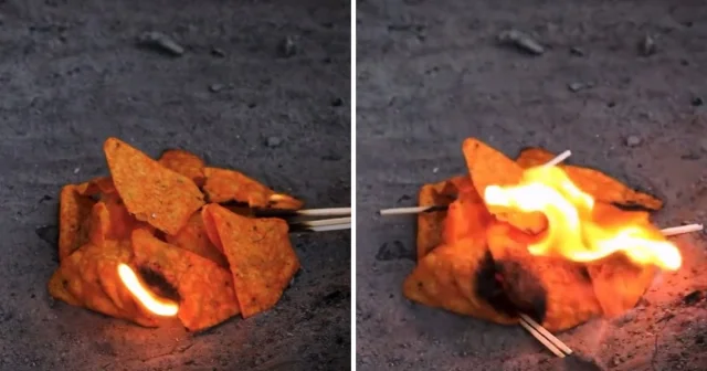 Чипсы Doritos легко воспламеняются и могут использоваться в качестве средства для розжига огня