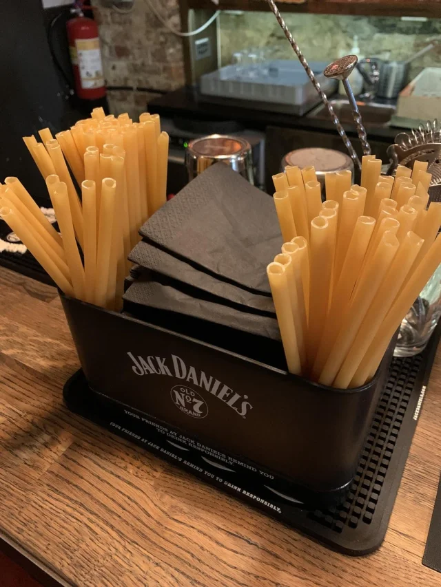 Макароны здесь используются в качестве соломинок вместо пластика