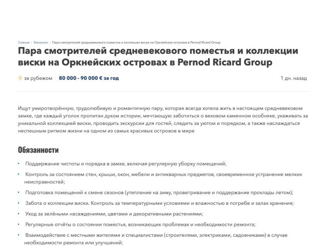 В Шотландии ищут пару для работы в замке с коллекцией виски за 7 тысяч долларов! Сотрудникам предстоит жить в настоящем замке на Оркнейских островах и просто присматривать за элитным виски. Дегустация разрешена! Любопытная работенка...