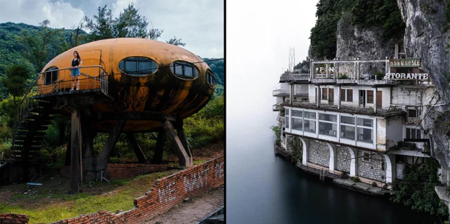 Этот городок был заброшен, но в нем так и остались стоять домики в виде тарелки НЛО