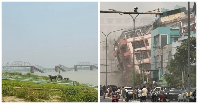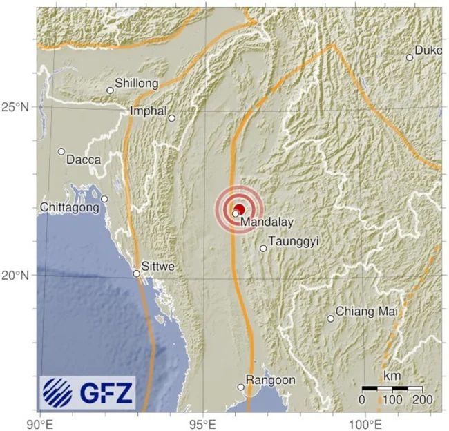 Сообщается, что в Сагайне (Мьянма) рухнул пролётный мост через реку Иравади. Исторический дворец XIX века Мандалай, расположенный в одноимённом городе, частично разрушен.