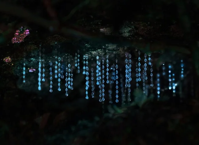 Светящийся червь - это общее название для биолюминесцентных личинок, представленных самыми разными видами. В этом случае речь идёт о Arachnocampa richardsae - разновидности грибного комарика.