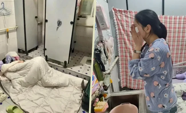 В помещении площадью шесть квадратных метров, где два унитаза и раковина. Ян установила в туалете раскладушку, поставила небольшую кастрюлю, повесила занавеску и вешалку для одежды. В обмен она также убирает туалет перед сном, чтобы самой было чище спать. Это лишь одна из тысячи историй, просто шокирующая местом проживания – общим туалетом, которым днем пользуются ее же сотрудники.