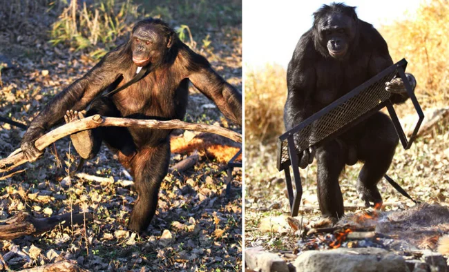 Интеллектуальные познания обезьяны не ограничивались словесными перепалками и описанием своих хотелок. Канзи имел самый настоящий дух изобретателя. Так бонобо освоил огонь! С пяти лет Канзи манило пламя. Он любил смотреть на него, любил наблюдать, как его разводят. В один момент он попытался соорудить костер самостоятельно, и его начинания поддержали ученые. Как итог, к зрелым годам бонобо умел находить хворост, собирать его в кучу, пользоваться спичками, подкидывать дрова для поддержания огня и даже готовить! Любимое блюдо на костре у Канзи были зефирки.