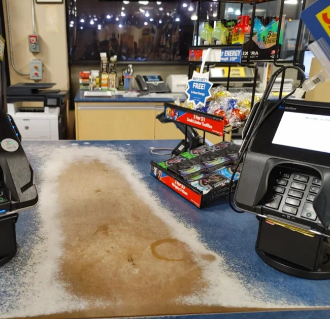 Это прилавок магазина на придорожной стоянке. Очевидно, он пользуется спросом!