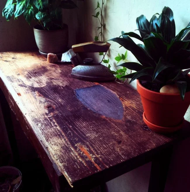 Ну а тут не надо лишних слов. Бедолага-стол! Сколько глажек он перенес!