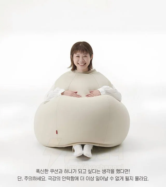 В Японии придумали скуф-костюм! По сути, это здоровенная подушка, в которую можно залезть. Таким образом, можно плюхнуть куда угодно и вздремнуть. Для удаленщиков самое то!